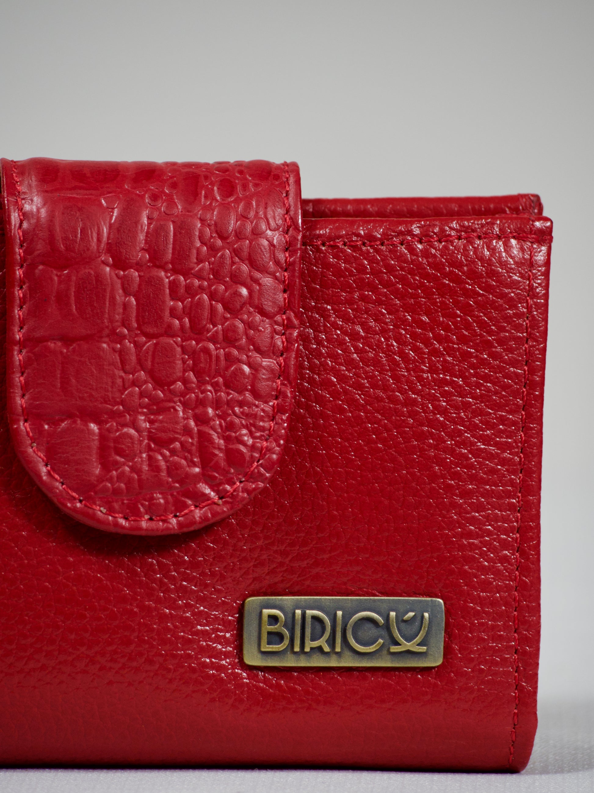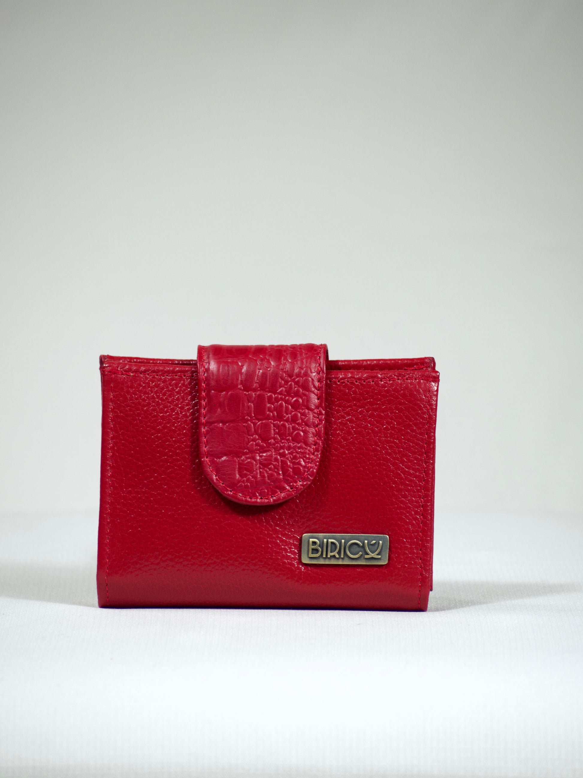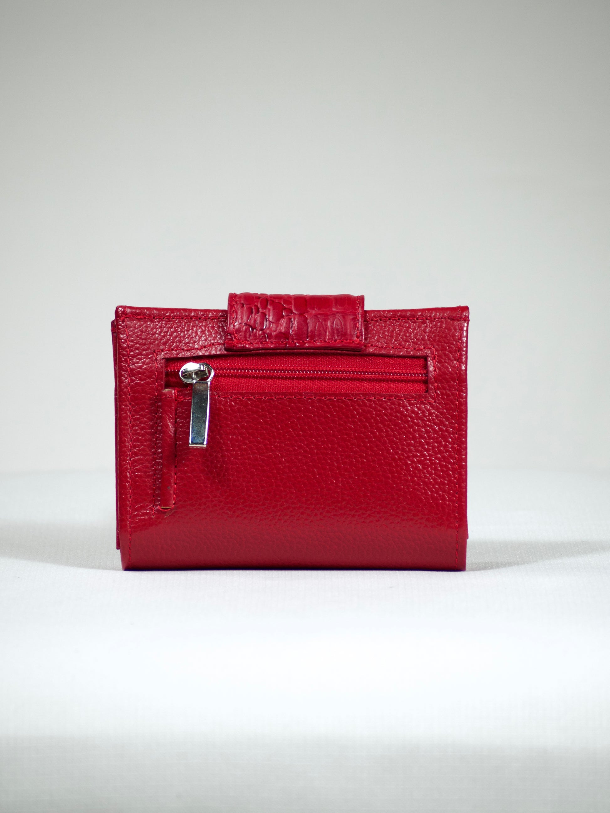 Pequeña, poderosa y siempre lista para acompañarte. Esta billetera en cuero rojo combina una estructura clásica con detalles modernos como su textura tipo reptil en la solapa y herrajes metálicos en dorado envejecido. Perfecta para quienes aman los accesorios con presencia.