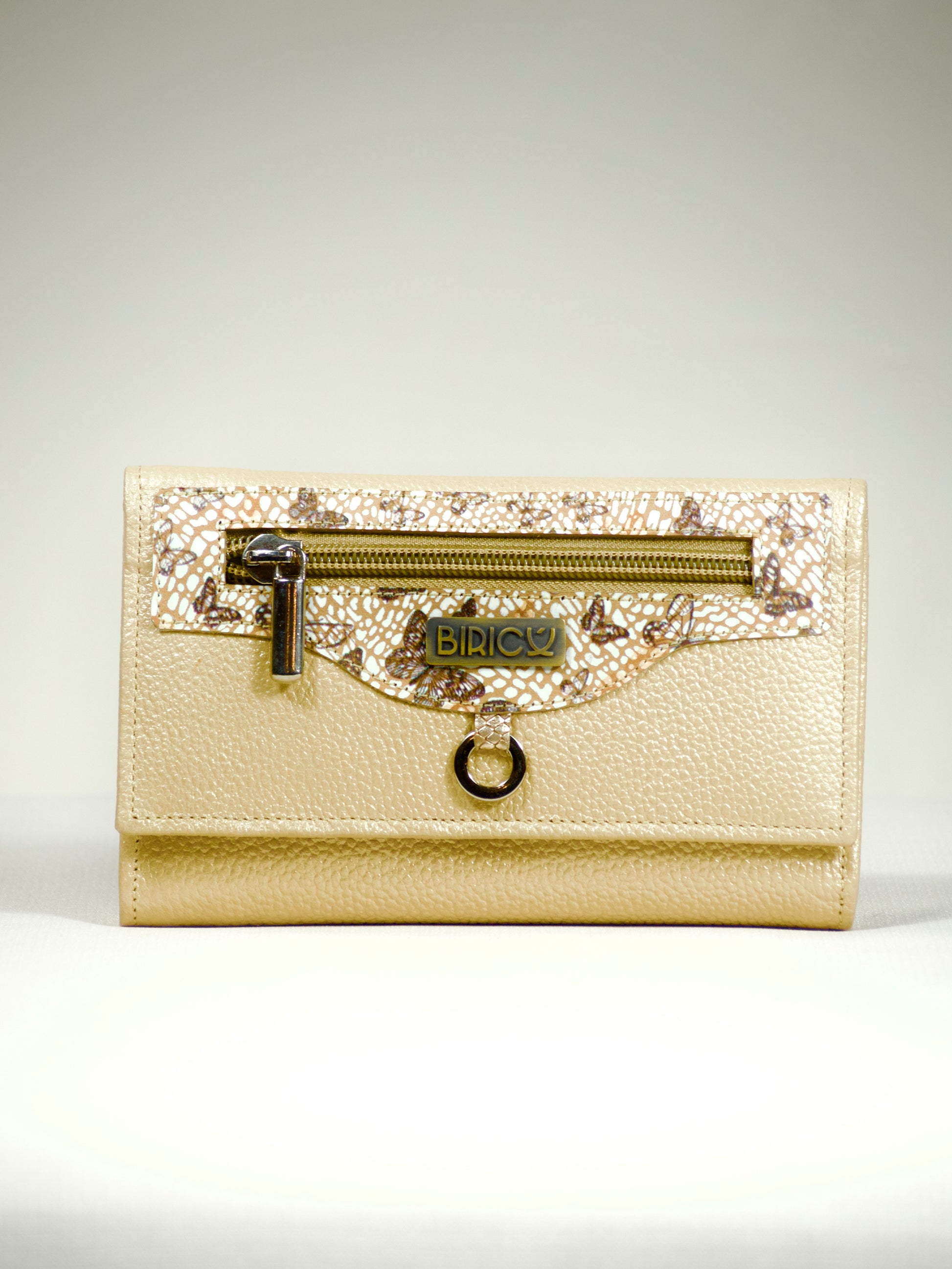 Diseñada para brillar sin exagerar, esta billetera en tono champagne combina un acabado perlado con una textura tipo encaje floral que la hace tan única como funcional. Perfecta para ocasiones especiales o para elevar tu look diario con un toque de sofisticación.